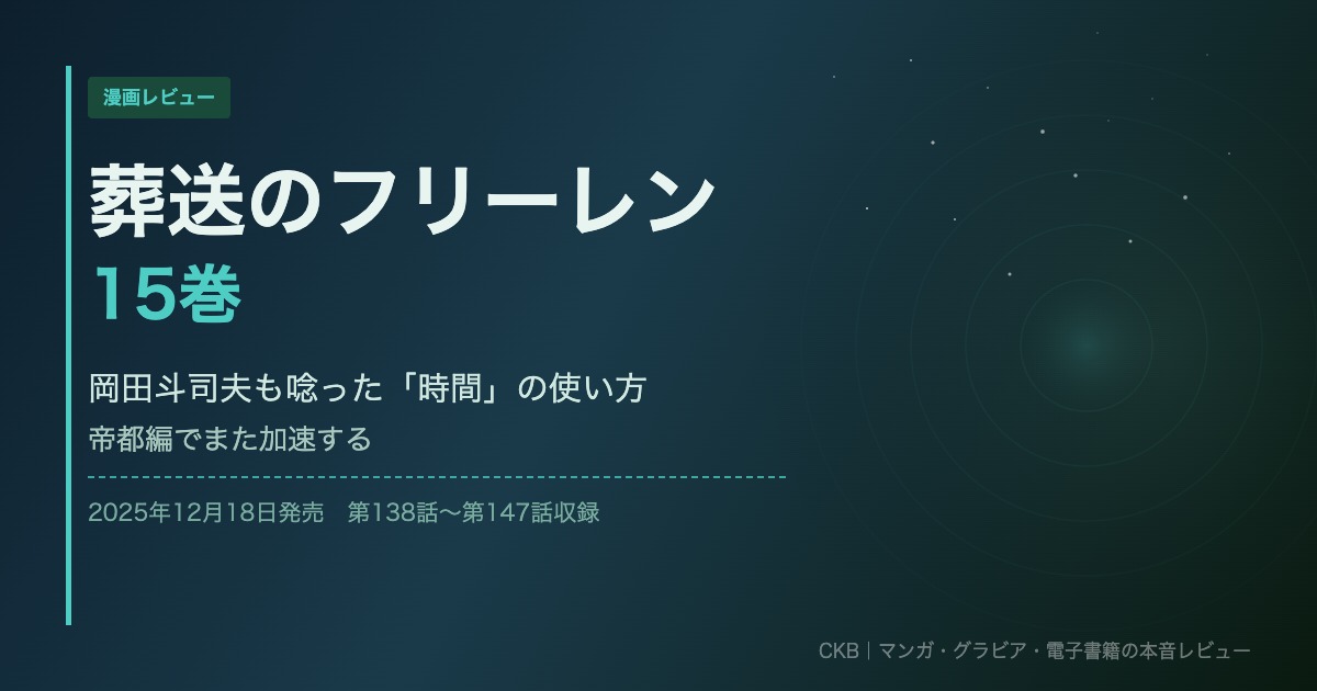 これはネタバレでもなんでもないんだけど、15巻の話題として「フリーレンたちの舞踏会ドレス姿が可愛い」というのがかなり広がっていた。実際、アベツカサ先生の作画は毎巻ちゃんと上がり続けていて、衣装や表情の描き込みが細かい。ストーリーの重さとキャラクターのかわいさが共存しているのも、この漫画が長く読まれている理由だと思う。